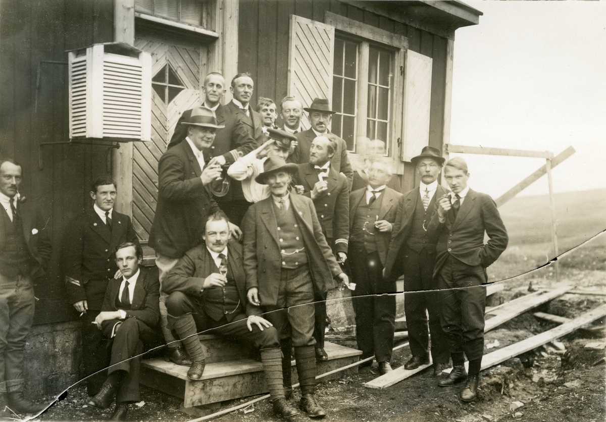 Gäster och tjänstemän utanför mässen vid Sveagruvan 1919.