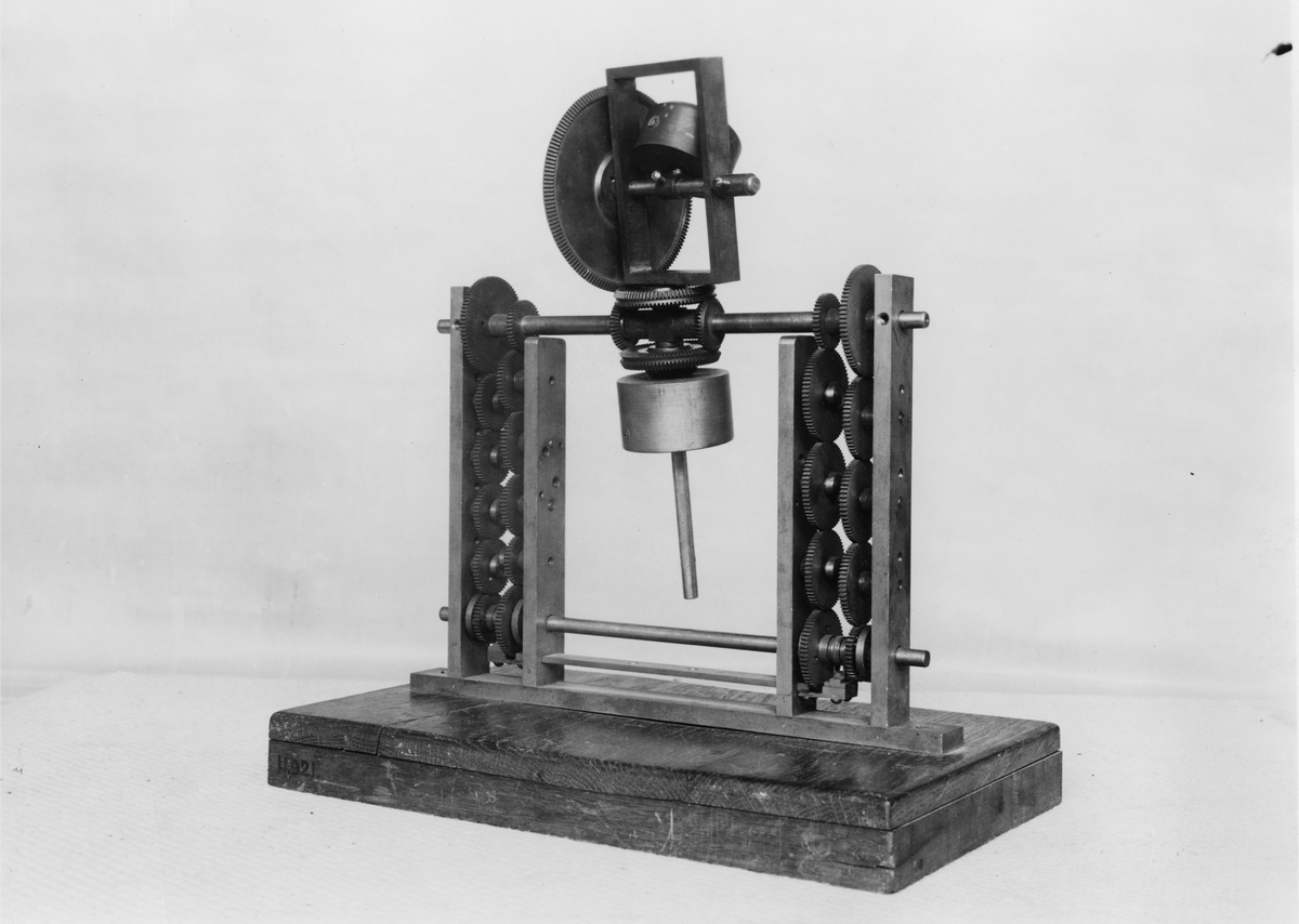 Modell till perpetuum mobile, byggd på principen med roterande och fallande vikter.