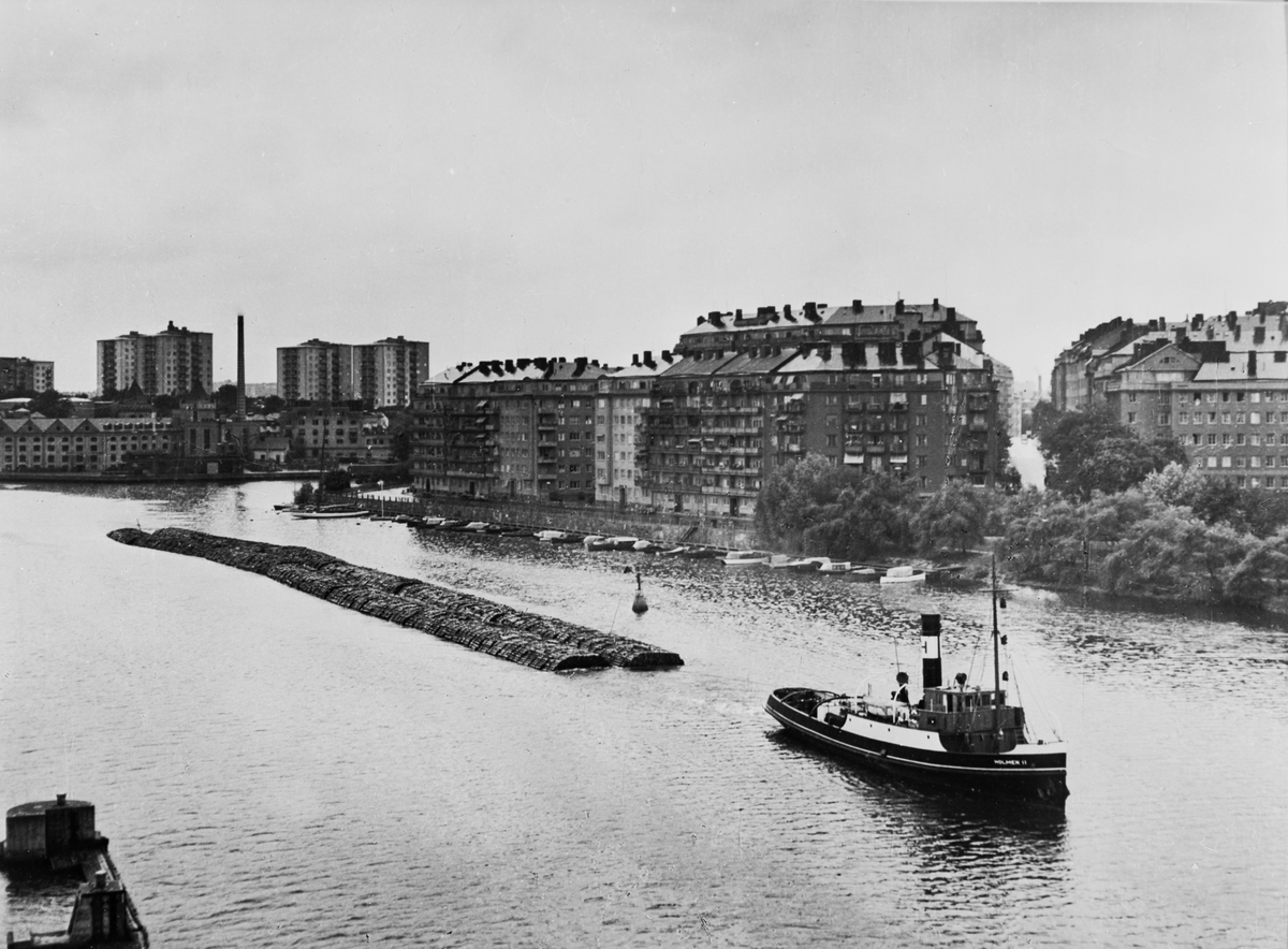 Massavedslöp passerande Hammarbyleden från Mälardalen till Hallstavik resp. Norrköping för Holmens Bruks papperstillverkning.