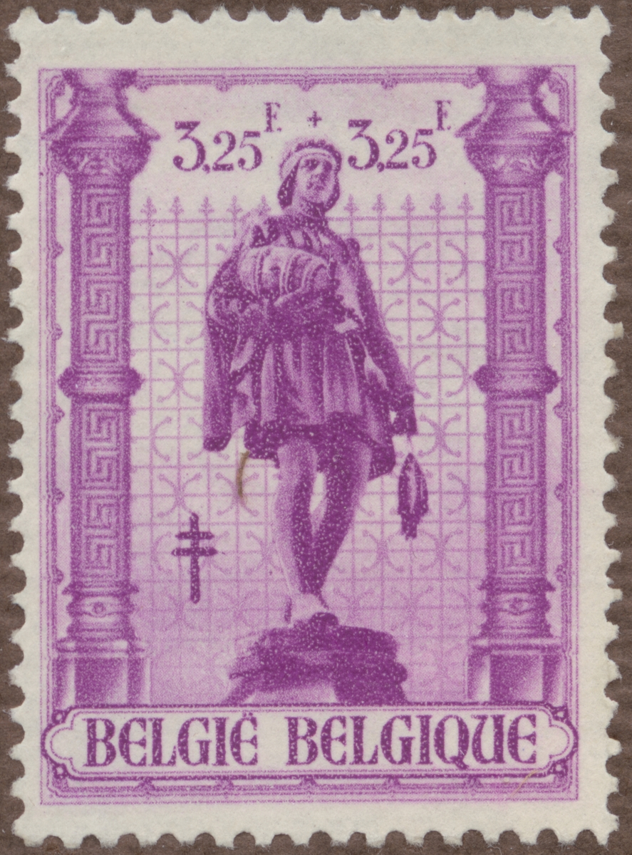 Frimärke från Belgien, 1943. Motiv av Belgisk fiskhandlare "Yrkesserie" -Till förmån för krigsfångår-