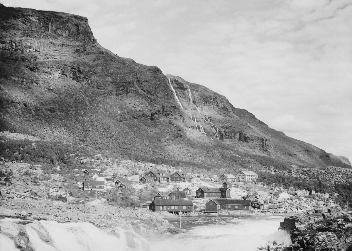 Suorva kraftverk. Regleringsdammen vid Suorva i bakgrunden Låmetjokko.