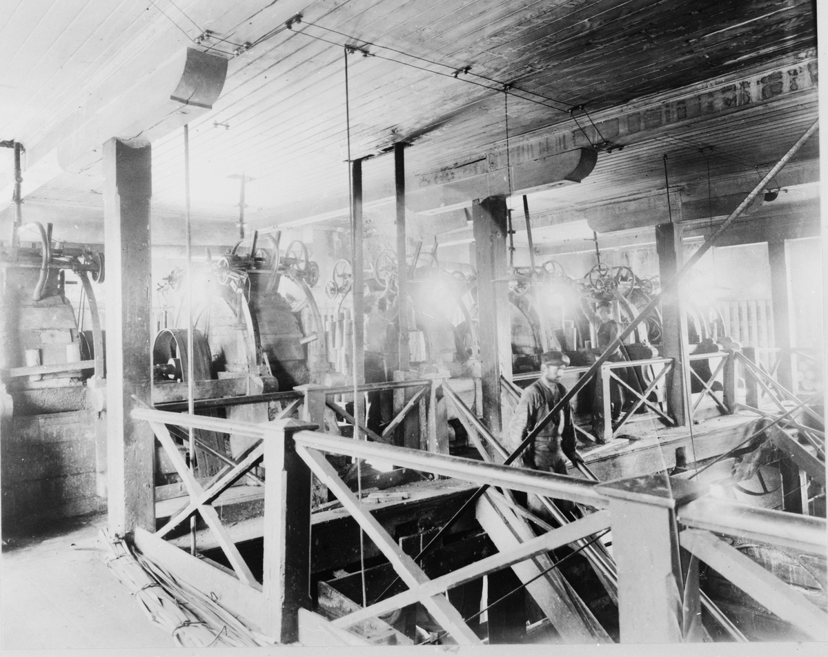 Interiör av sliperiet.Gamla pappfabriken. Slipar.I nedre våningen-raffinörer.
