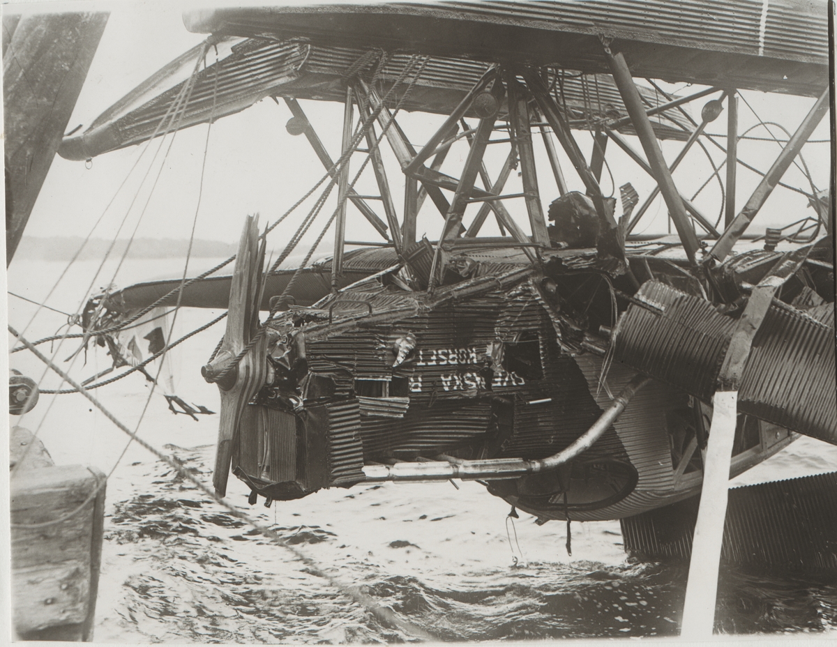 Ambulansplanet, tillhörigt Svenska Röda korset, efter nedslag i vattnet, vid Nobileexpeditionen 1928.
