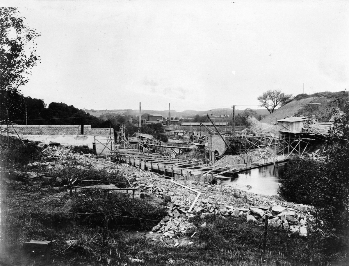 Byggherre: Byggnadsaktiebolaget Contractor, Stockholm. Hultaverket. Uppströmsvy, från vänstra stranden.