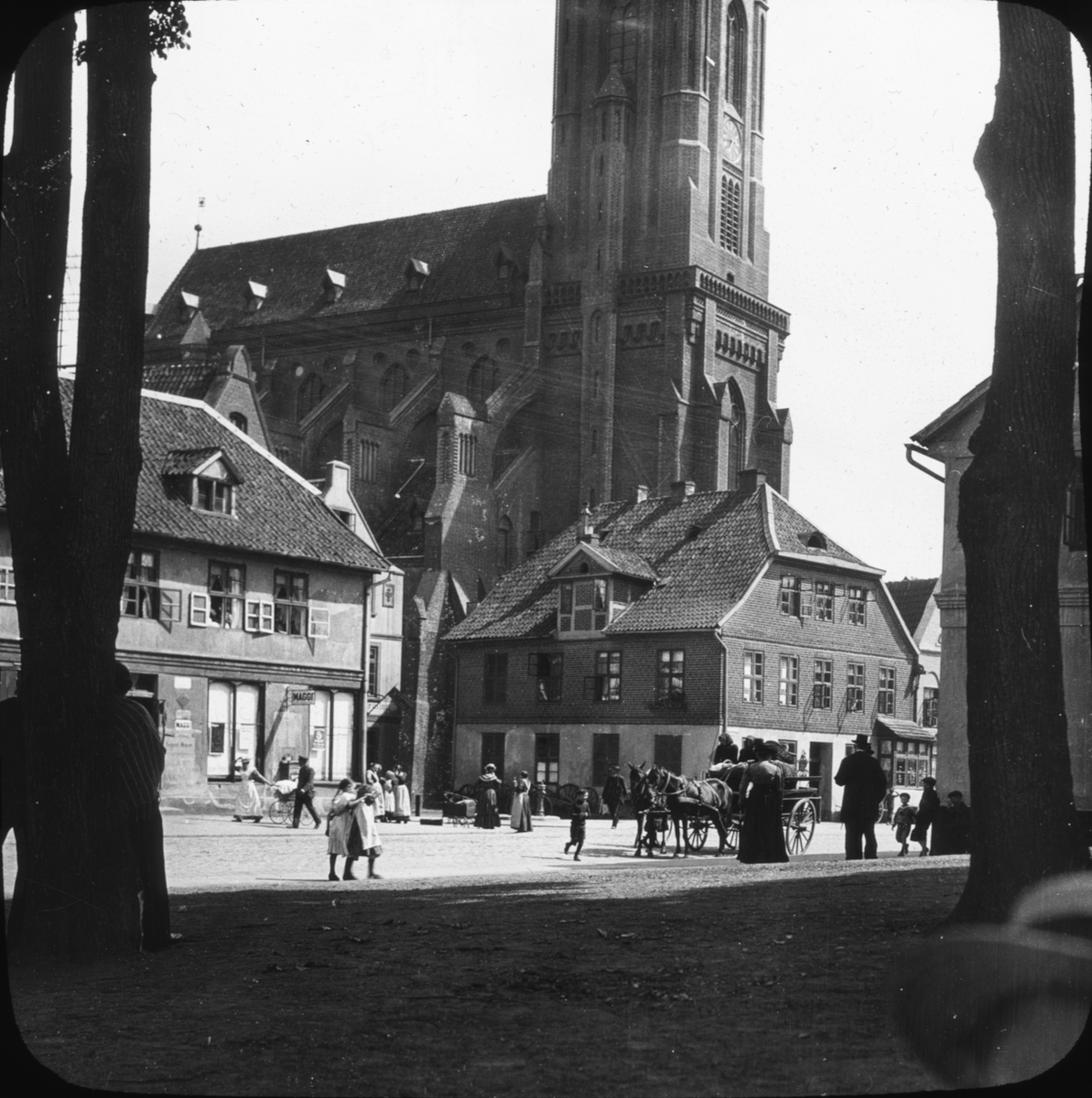 Bilden har förvarats i kartong märkt: Resan 1904. München. Text på bild: "Rådhuset".