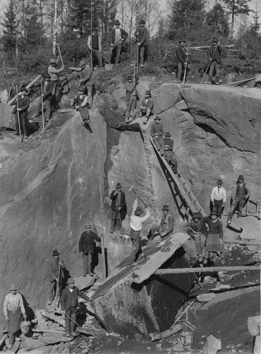 Stenbrott vid Målaskog i Karlshamn 1904. Bild från tidskriften Hemmets bildmaterial.
