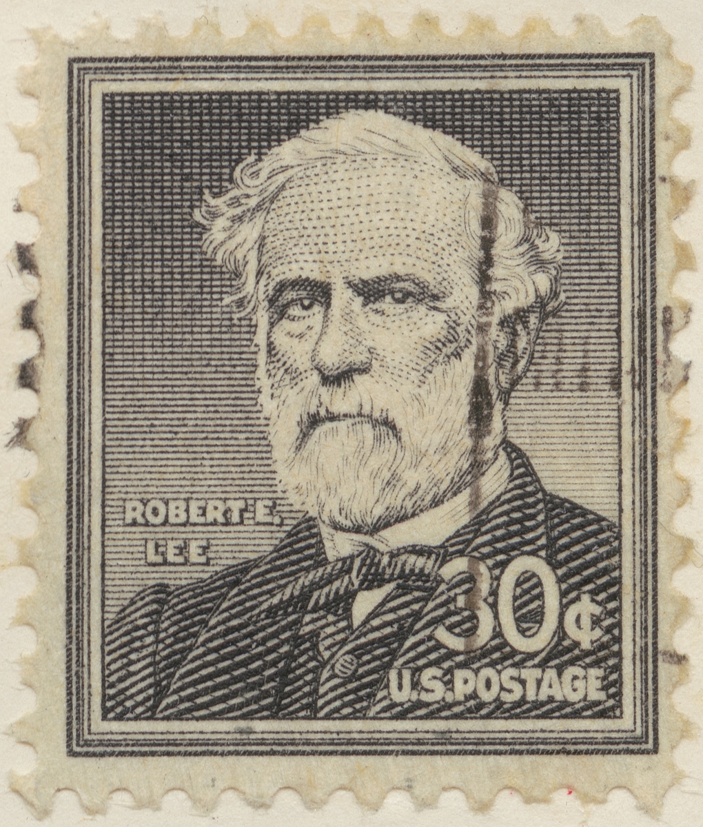 Frimärke från U.S.A., 1955. Motiv av General Robert E. Lee 1807-1870. Högsta befälhavare över "Confederate States" stridskrafter 1862-65. "Liberty" serie."