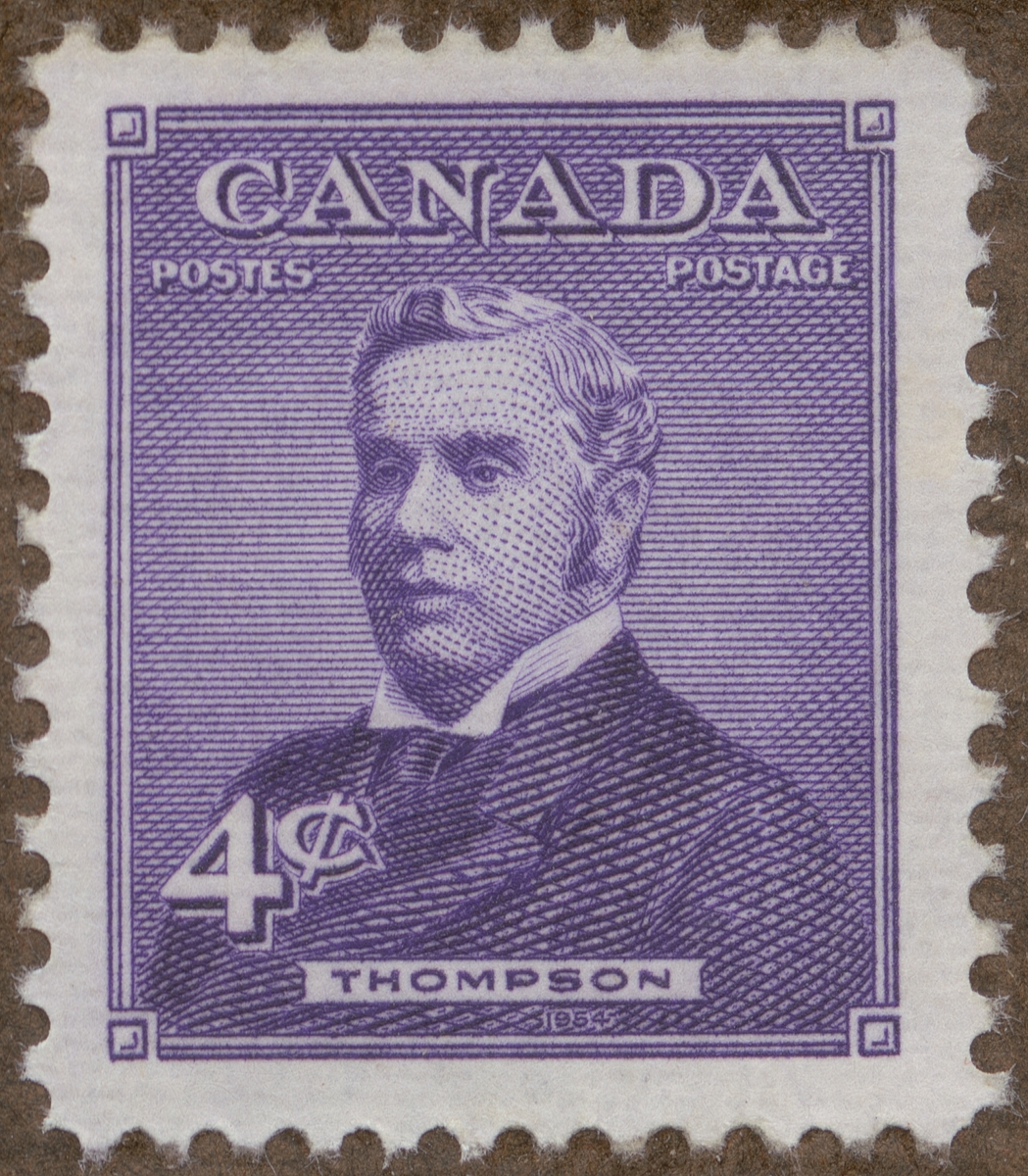 Frimärke från Canada, 1957. Motiv av David Thompson 1770-1857 Pälsjägare Upptäcktsresande Geograf Utforskade och kartlade ca. 1,700,000 eng. kv. mil rese-ruter i det västliga Canada o. USA: 1796-1812 -100-årsminne av hans död- 1857-1957.