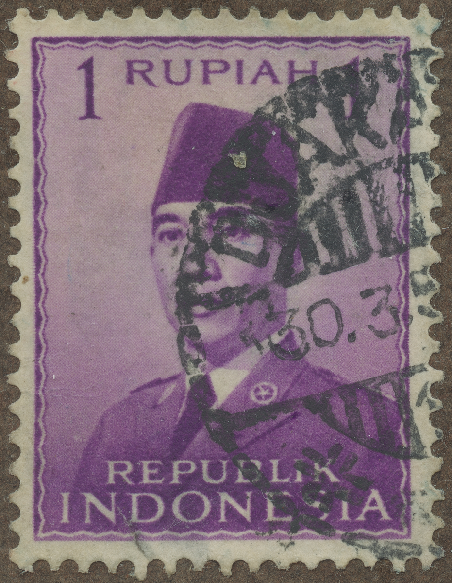 Frimärke från Indonesien, 1951. Motiv av President Achmed Sukarno f. 1900- President av Indonesien: 1949. Indonesisk enhetsstat upprättat 1950.