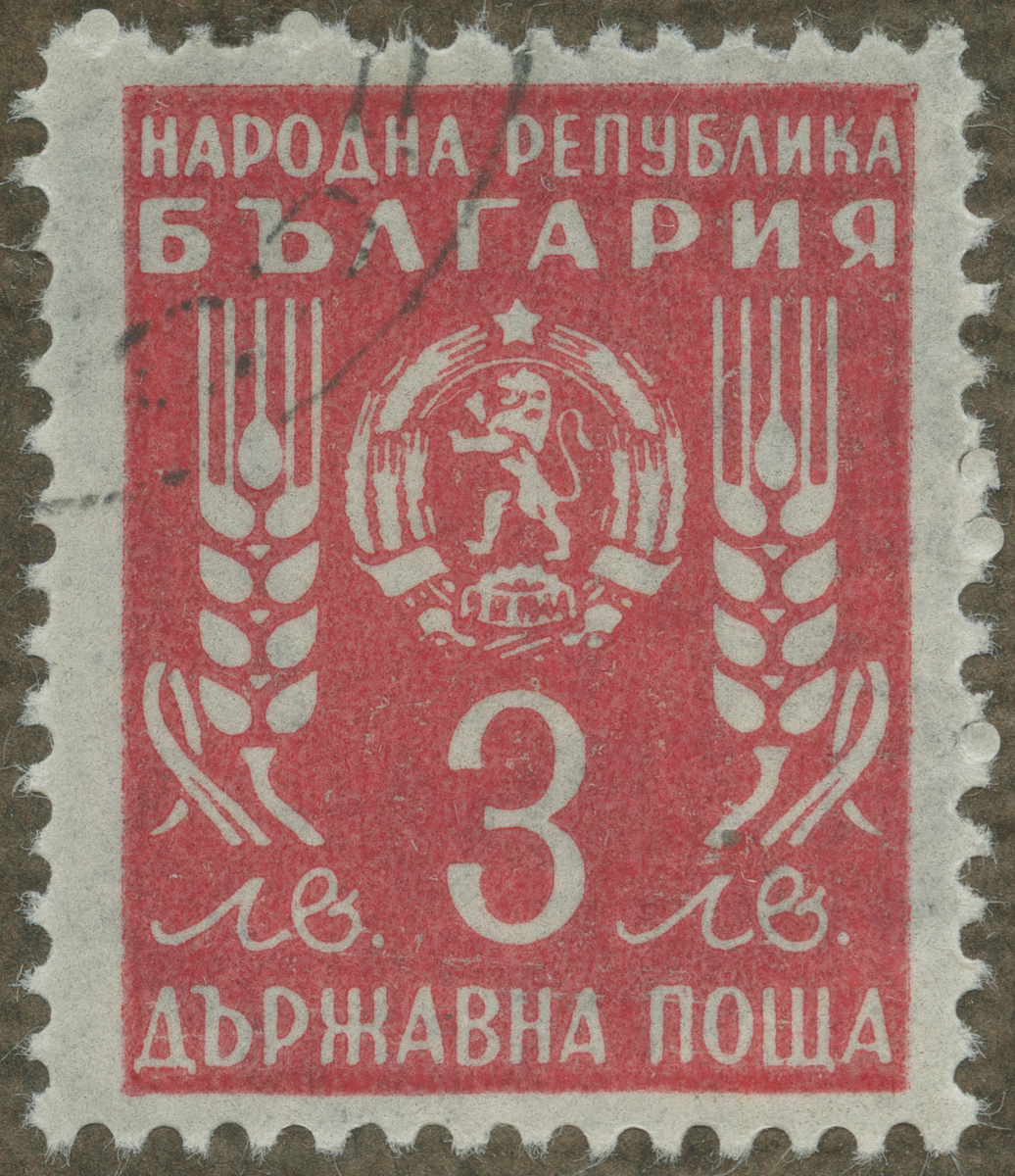 Frimärke från Bulgarien, 1950. Motiv av Bulgariens Vapen Lejon Tjänste