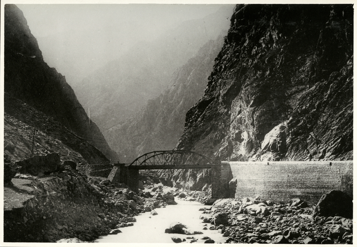 Djävulsbron i Darialklyftan. Grusinska härvägen, Kaukasus.