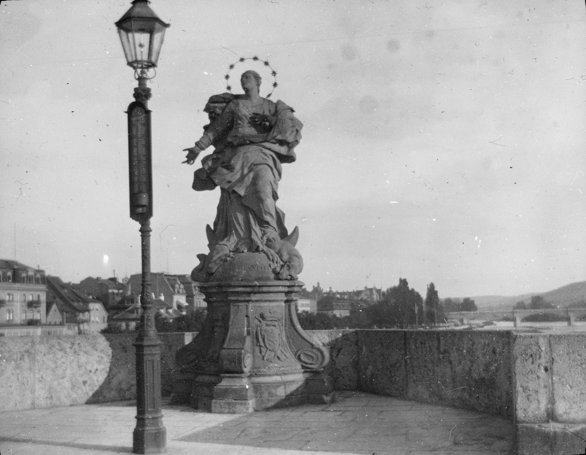 Skioptikonbild med motiv av okänd skulptur i Würtzburg.