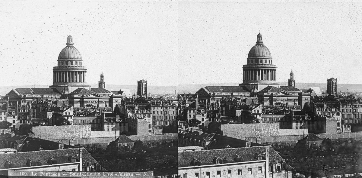 Stereobild. Le Panthéon - Sant-Etienne på utställningen i Paris.