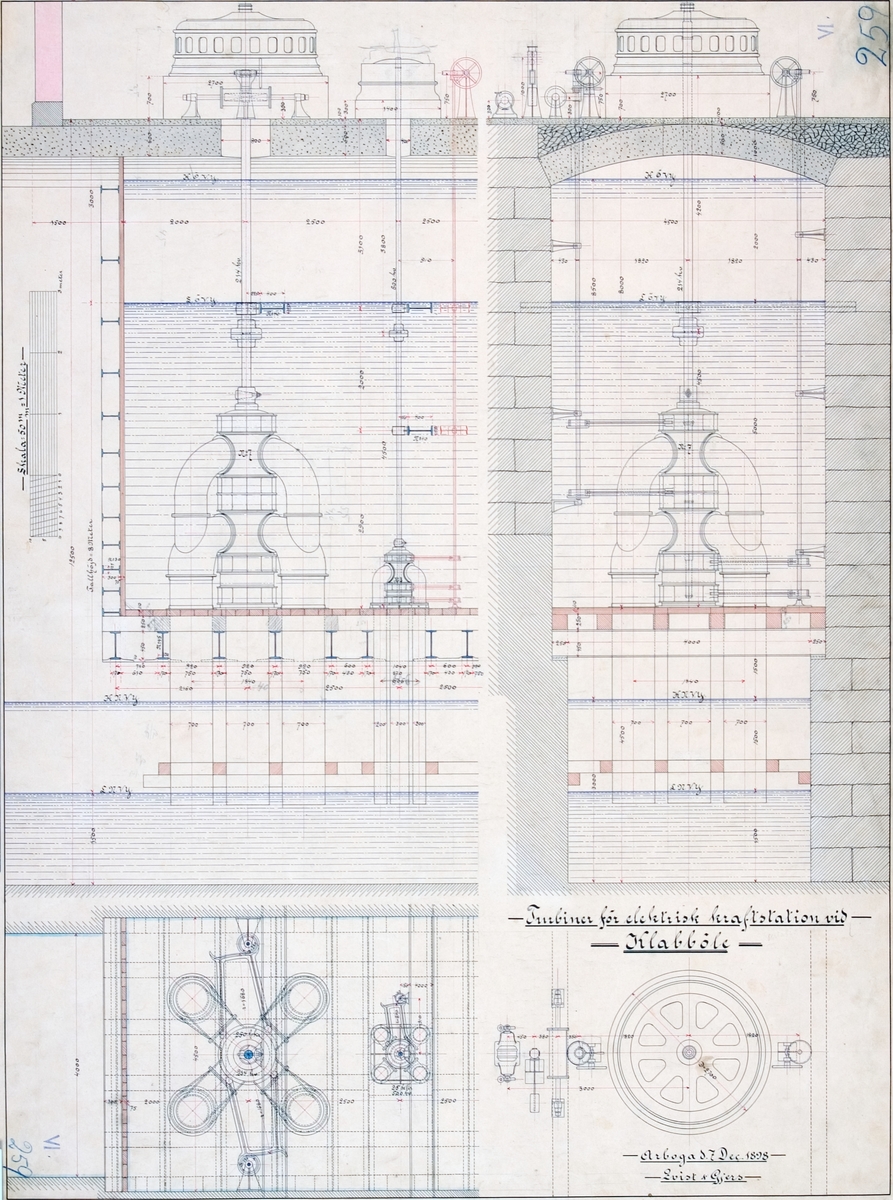 Ritning. Turbiner för Elektrisk kraftstation vid Klabböle.