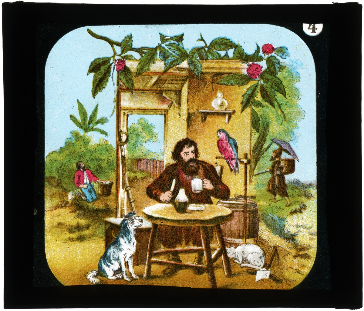 4. Robinson har gjort sig ett hem och tillverkat möbler.