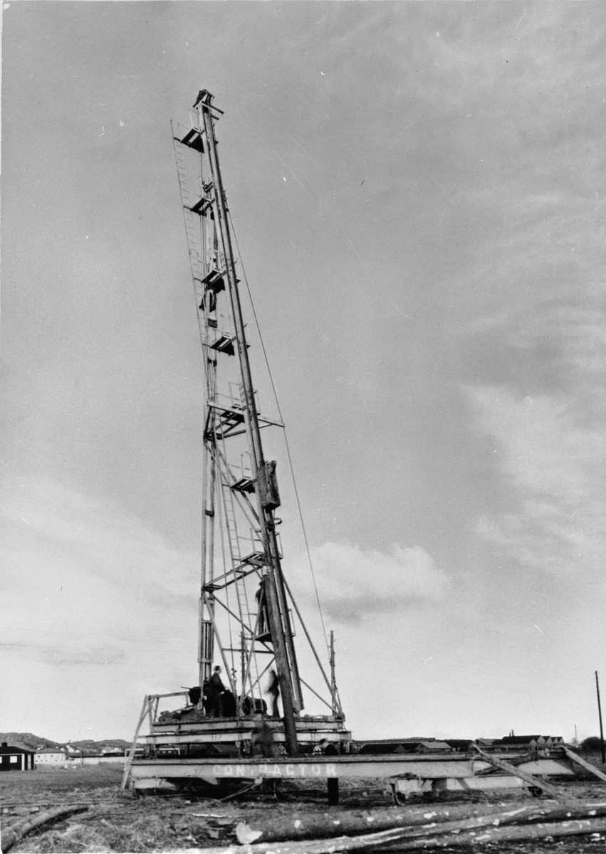 Byggherre: Byggnadsaktiebolaget Contractor, Stockholm. Pålning i Viadukten åt SJ (Statens Järnväg). "Denna plåt tagen på uppdrag av Molmens Mek. Verkstad".