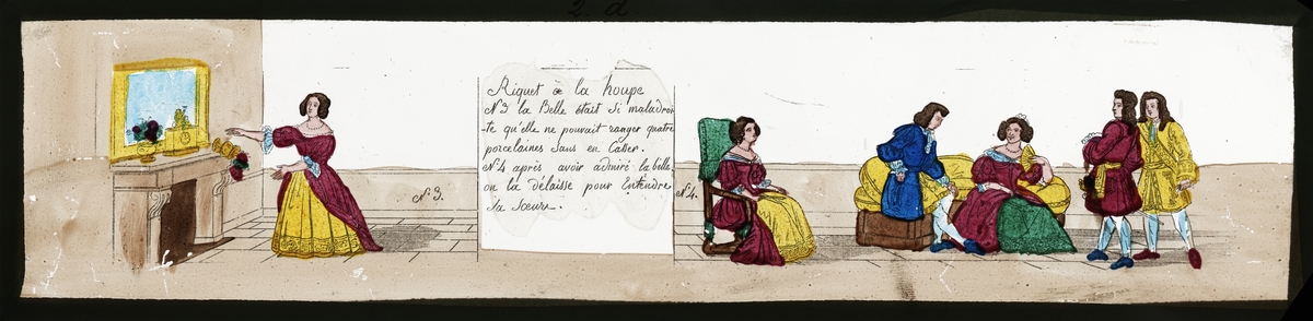 Titel: Målad bild på glas för Skioptikon/Laterna magica. Sagospel.