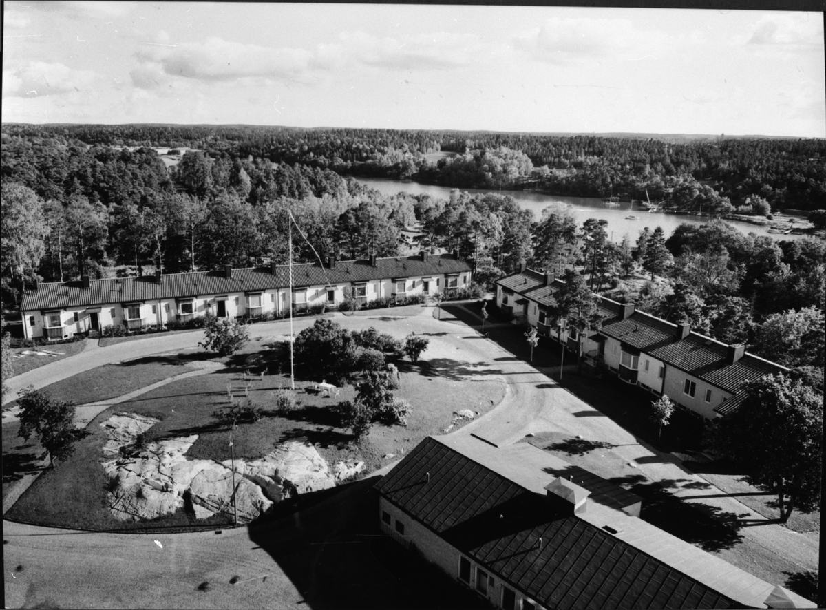 Byggherre: Byggnadsaktiebolaget Contractor, Stockholm. Fristående från denna anläggning ligger ett 20-tal rad- och kedjehus. Arkitekter SAR Sven Backström och Leif Reinius.