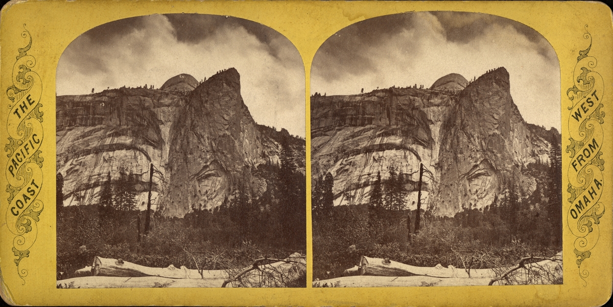Stereobild av bergsklippa och skog. Möjligen Yellowstone Nationalpark.