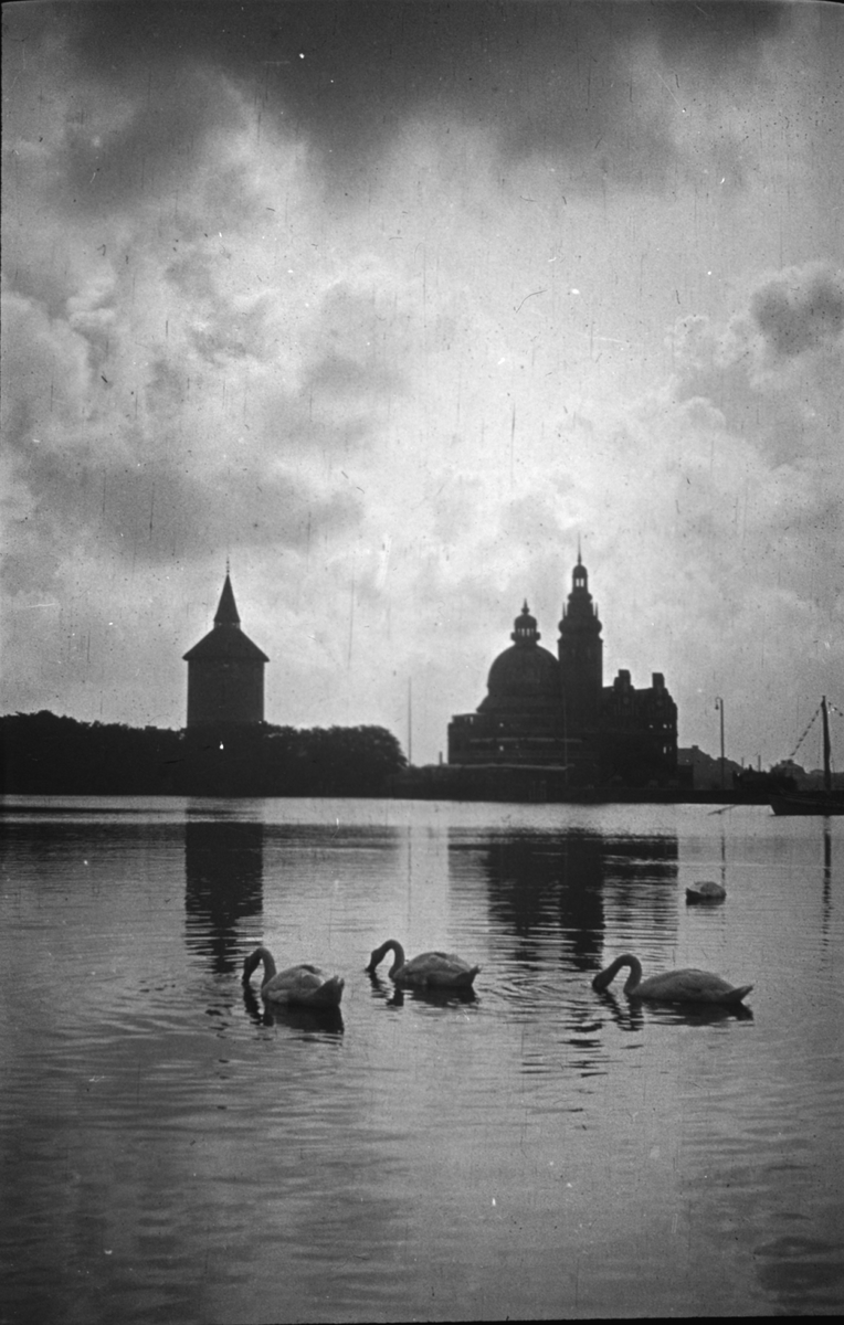 Skioptikonbild med motiv från Baltiska utställningen i Malmö 1914, konstindustri och hantverksutställning.
