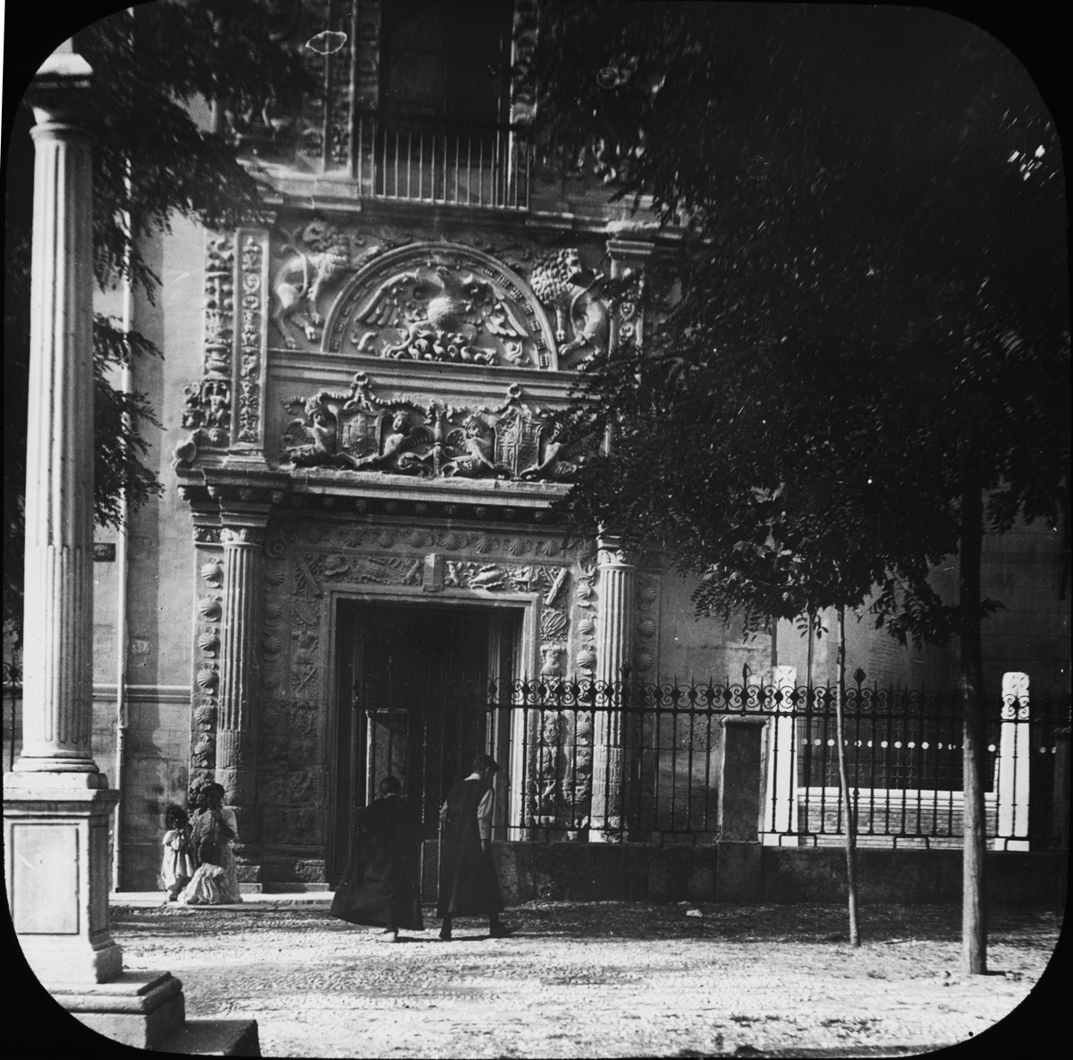 Skioptikonbild med motiv av renässansslottet Casa del Castril, Granada. (Arkeologiskt museum).