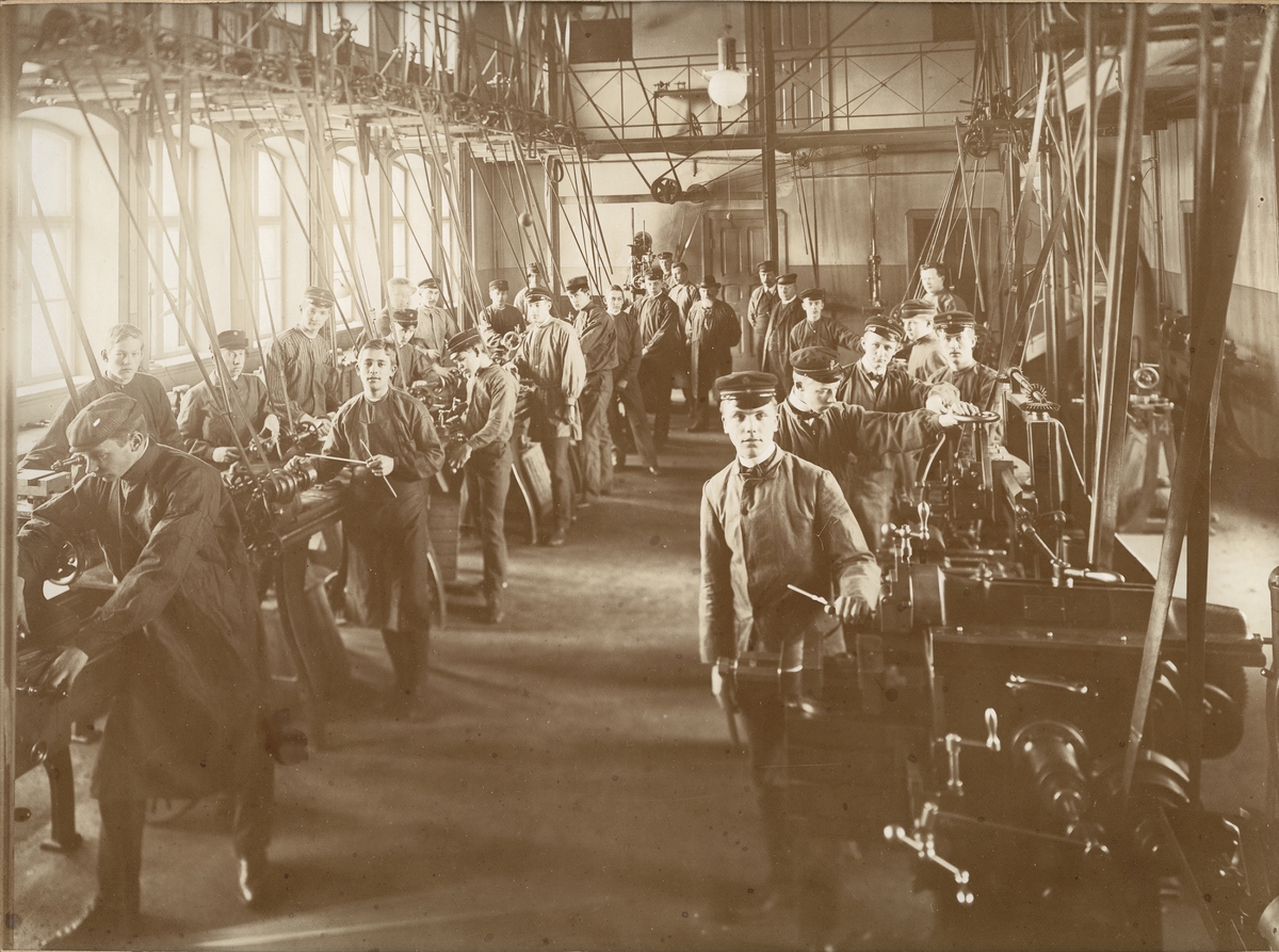 Mekanisk verkstad vid Örebro Läroverk, för första årskursen, 1907.