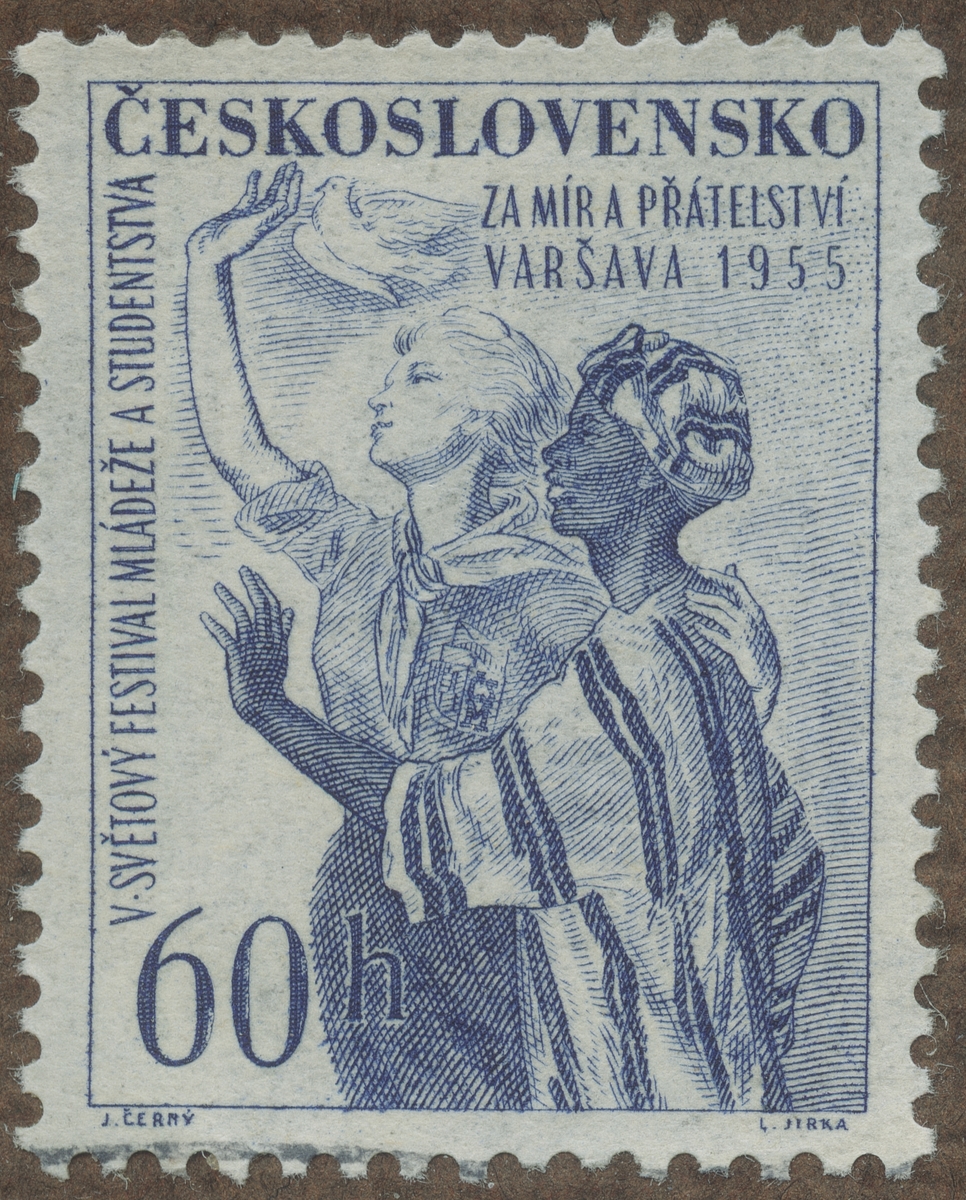 Frimärke från Tscheckoslovakiet, 1952. Motiv av Studentfestivalen i Varschava 1955