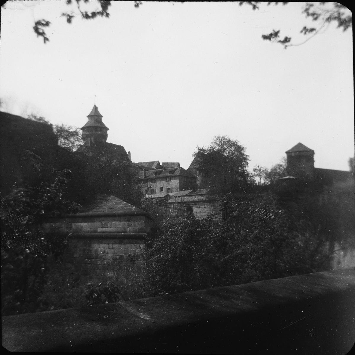 Skioptikonbild med motiv av vy över Nürnberg.