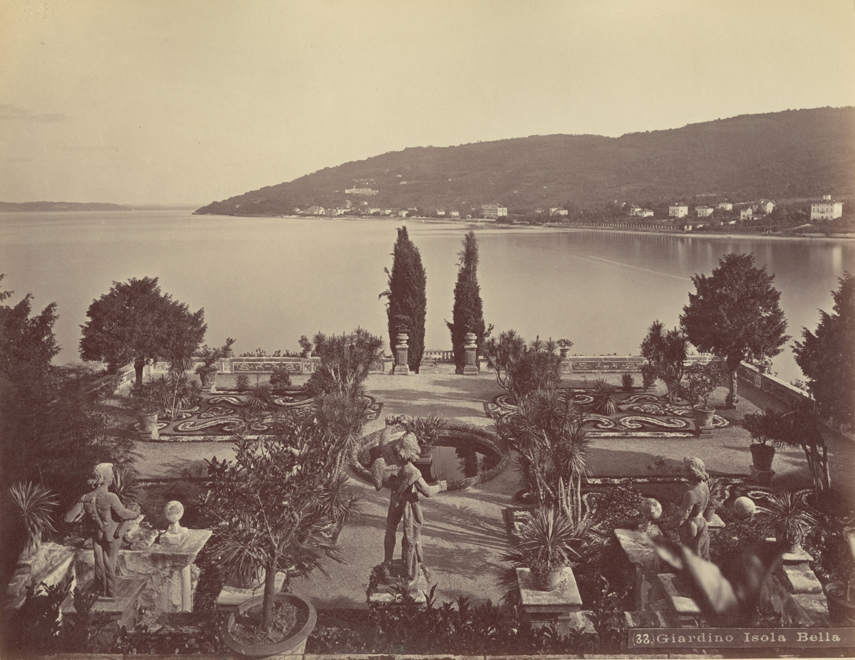 Skulpturparken Giardiono på ön Isola Bella i Lago Margiore, Italien, 1883.