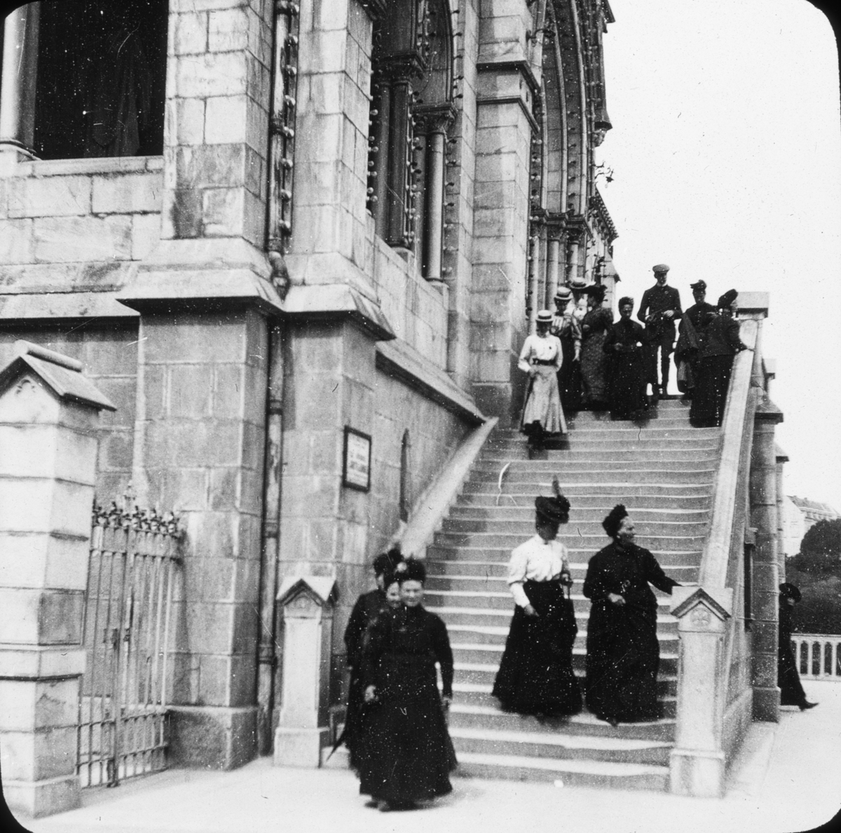 Skioptikonbild med motiv från Pau. Möjligen Katedralen i Pau.