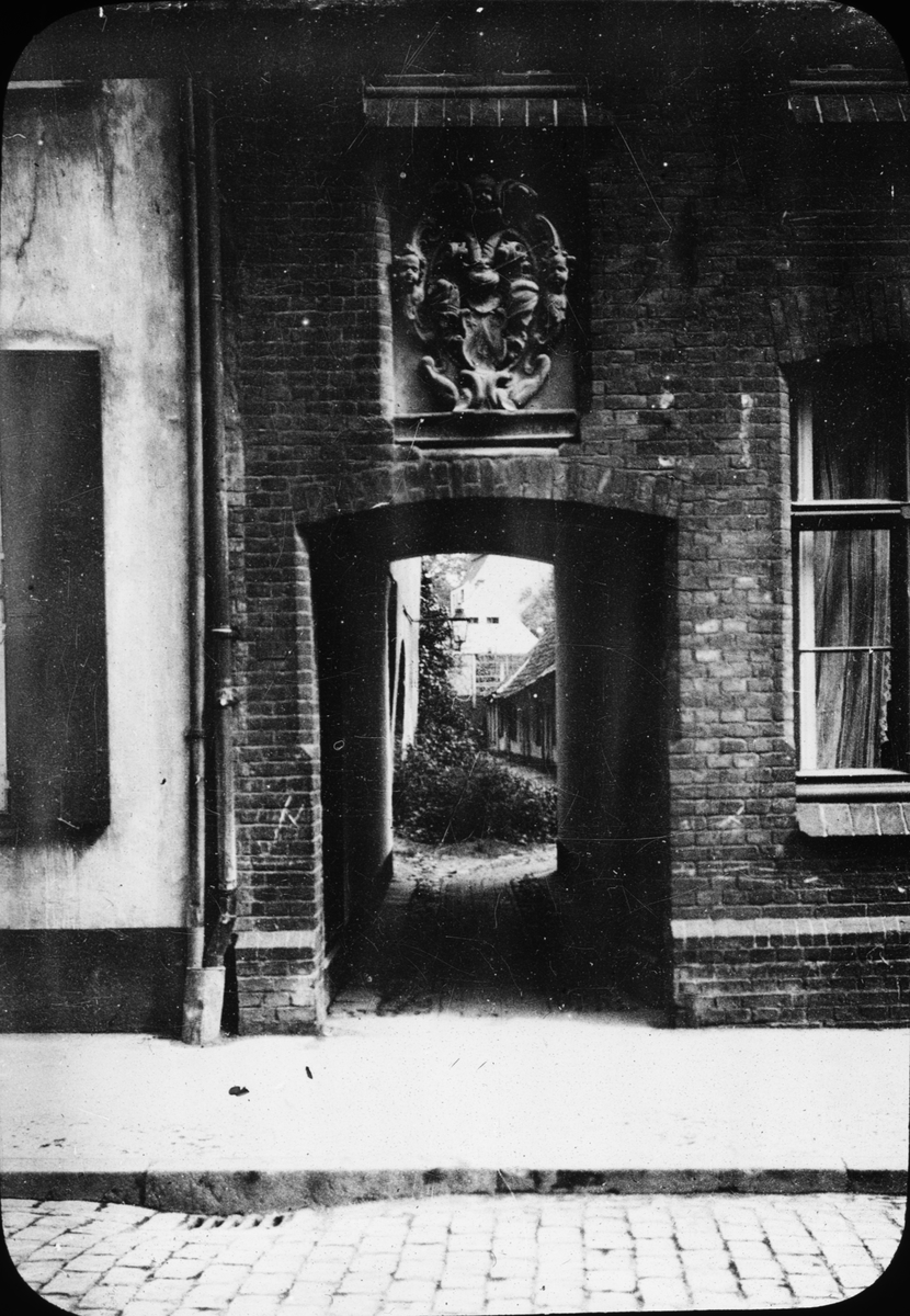 Skioptikonbild med motiv av okänd port i Lübeck.