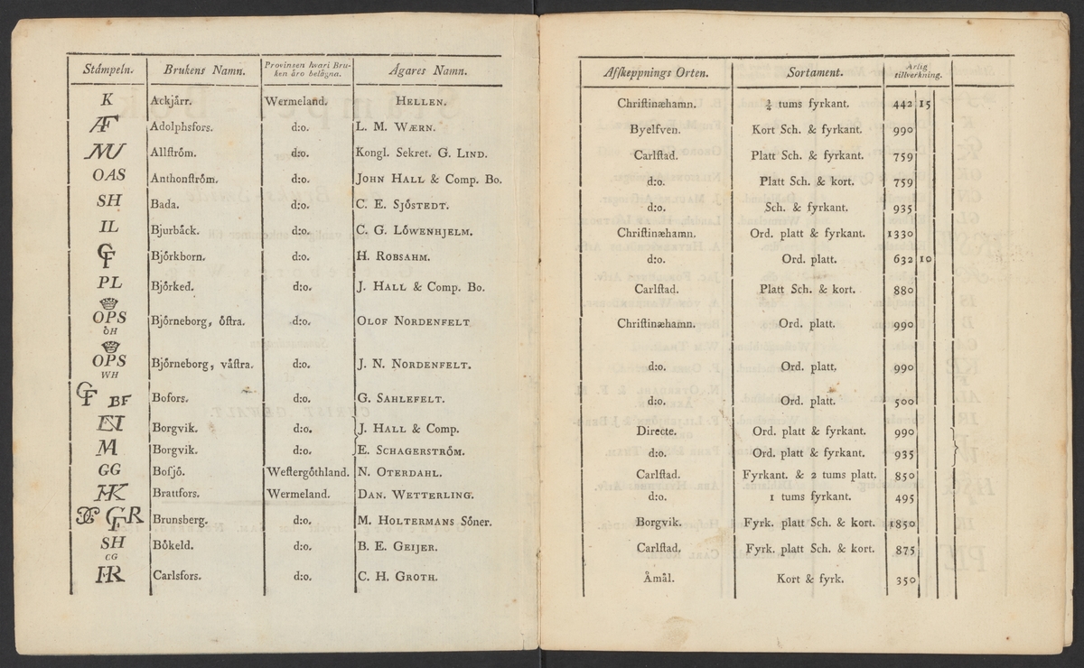 Stämpelbok öfver det brukssmide som vanligen ankommer till Götheborgs wåg.