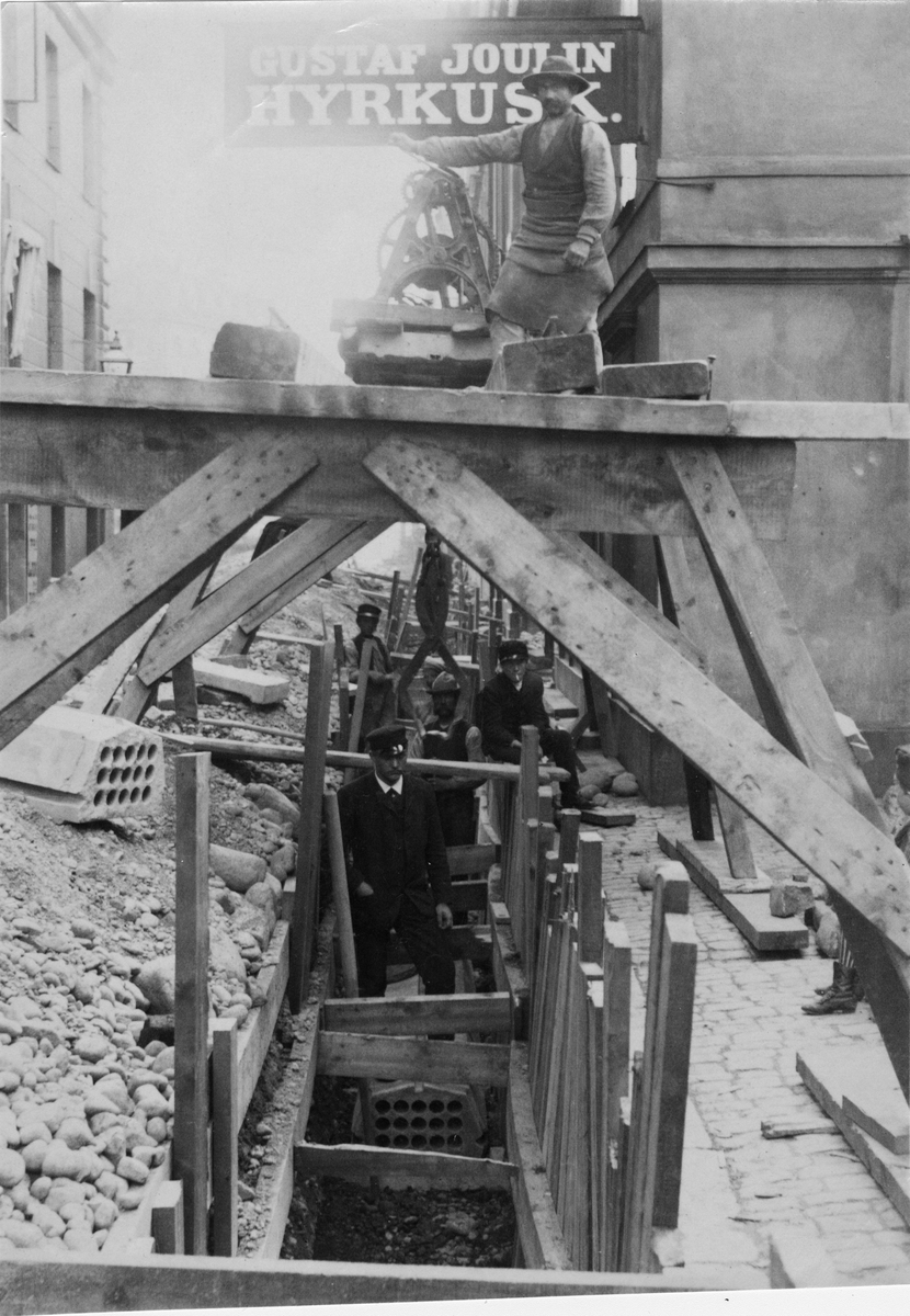 Nedläggning av telefonkabel i Stockholm 1891.