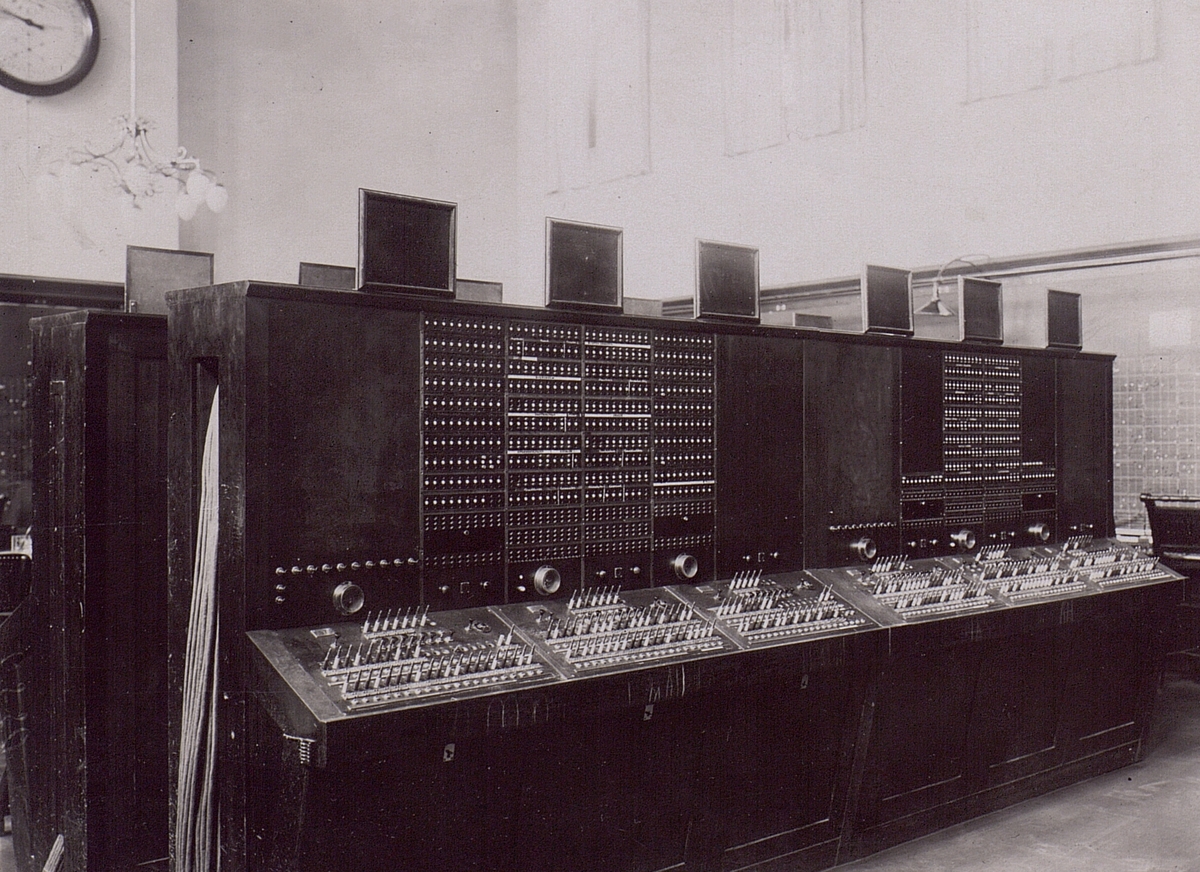 Skeppsbron 2, Stockholm. Namnanropsbord (i 2 längor, B-bord) uppsatta 3 trappor (rotundan) omkring 1913.