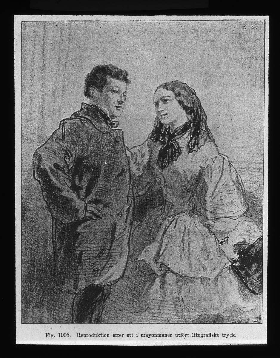 Reproduktion efter ett crayonmaner utfört litografiskt tryck.