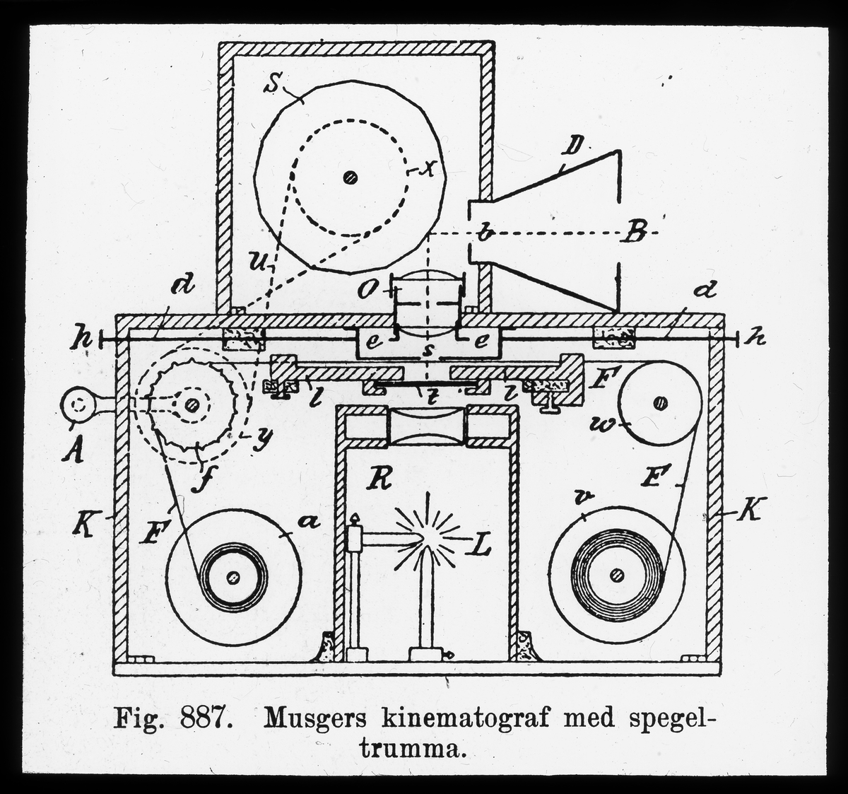 Musgers kinematograf med spegeltrumma.