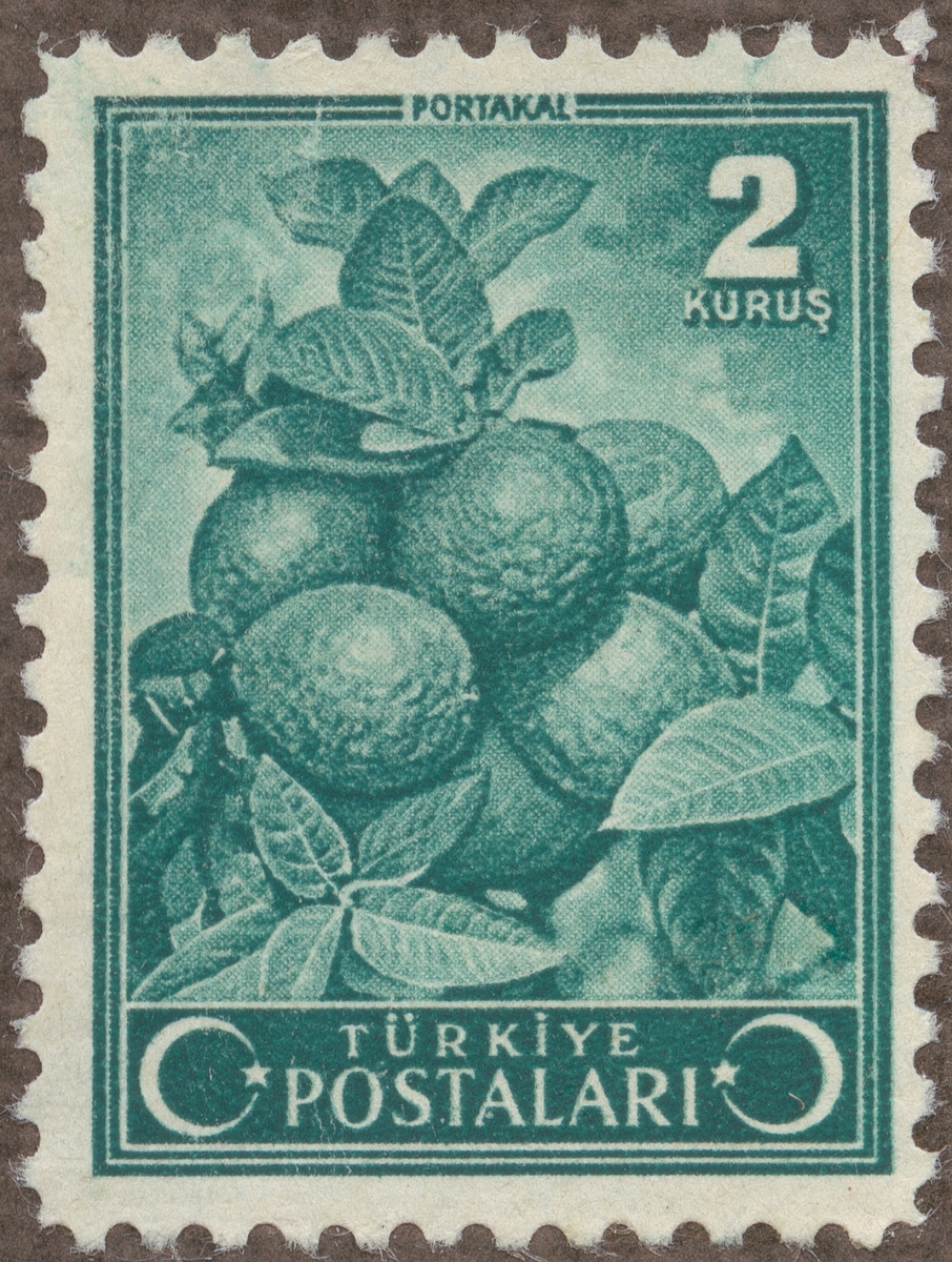 Frimärke från Turkiet, 1942. Motiv av gren med apelsiner.