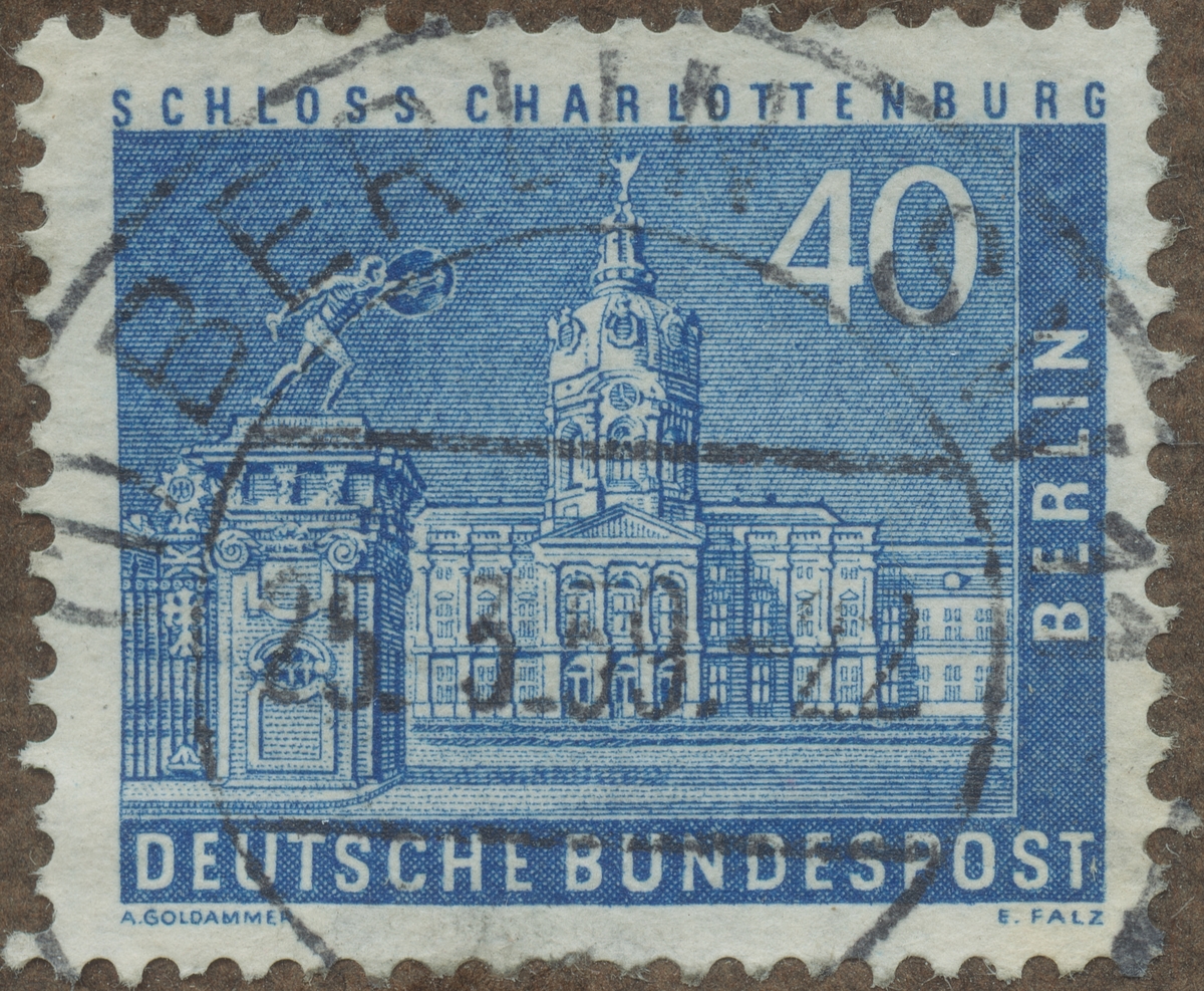 Frimärke från Väst Tyskland, 1958. Motiv av Slottet Charlottenburg i västra Berlin