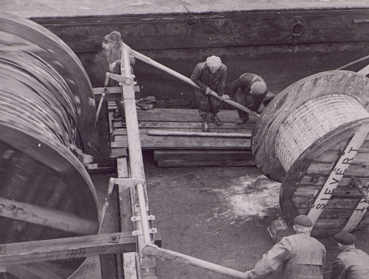 Sjökabel. Görveln. Trumma 54. Flänsdiameter 3300. Bredd 2190. Axeldiameter 120. 1949.