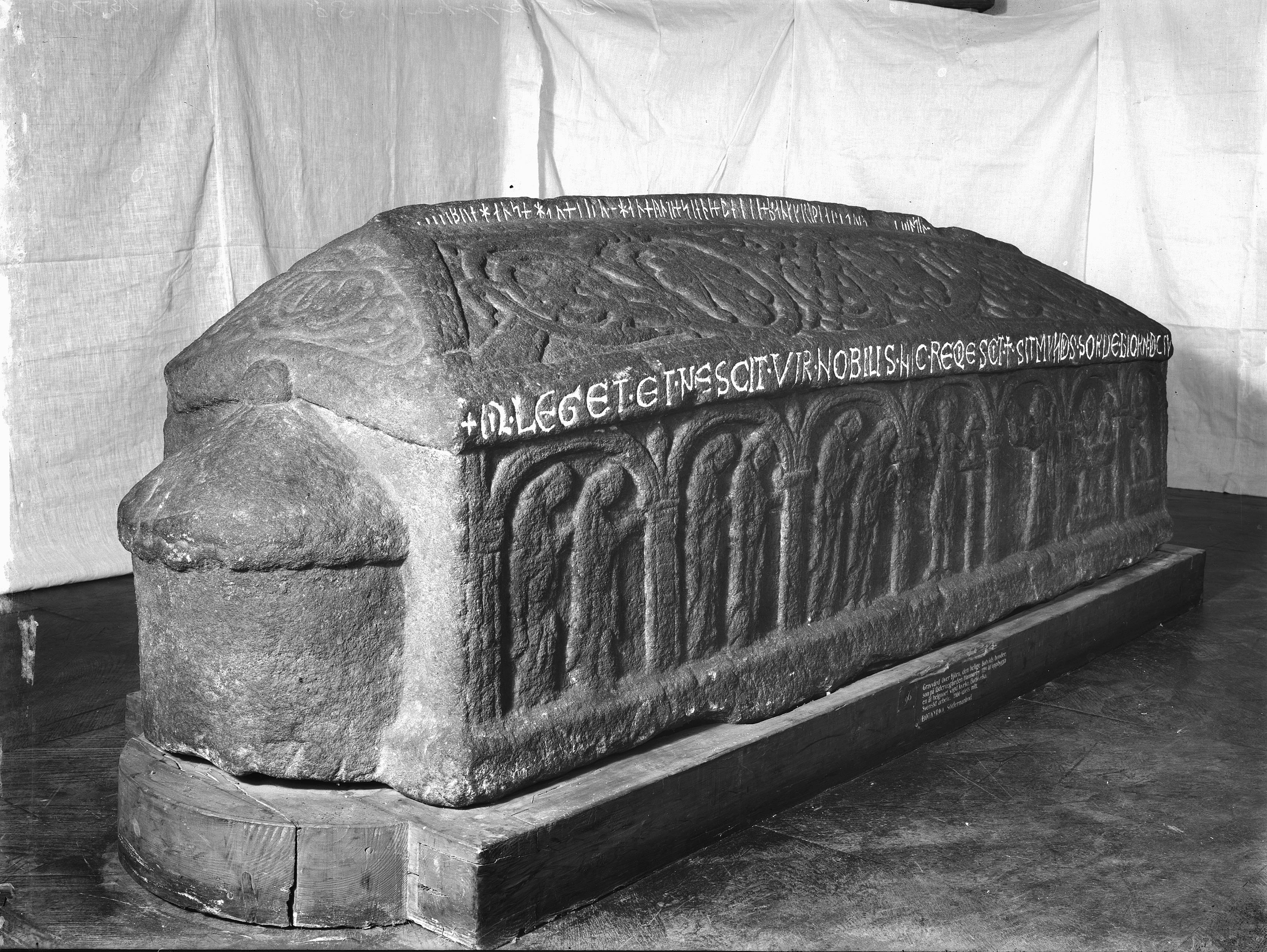 Botkyrkamonumentet. Gravvård av sandsten med grundform av en kyrka. 1100-talets första hälft.