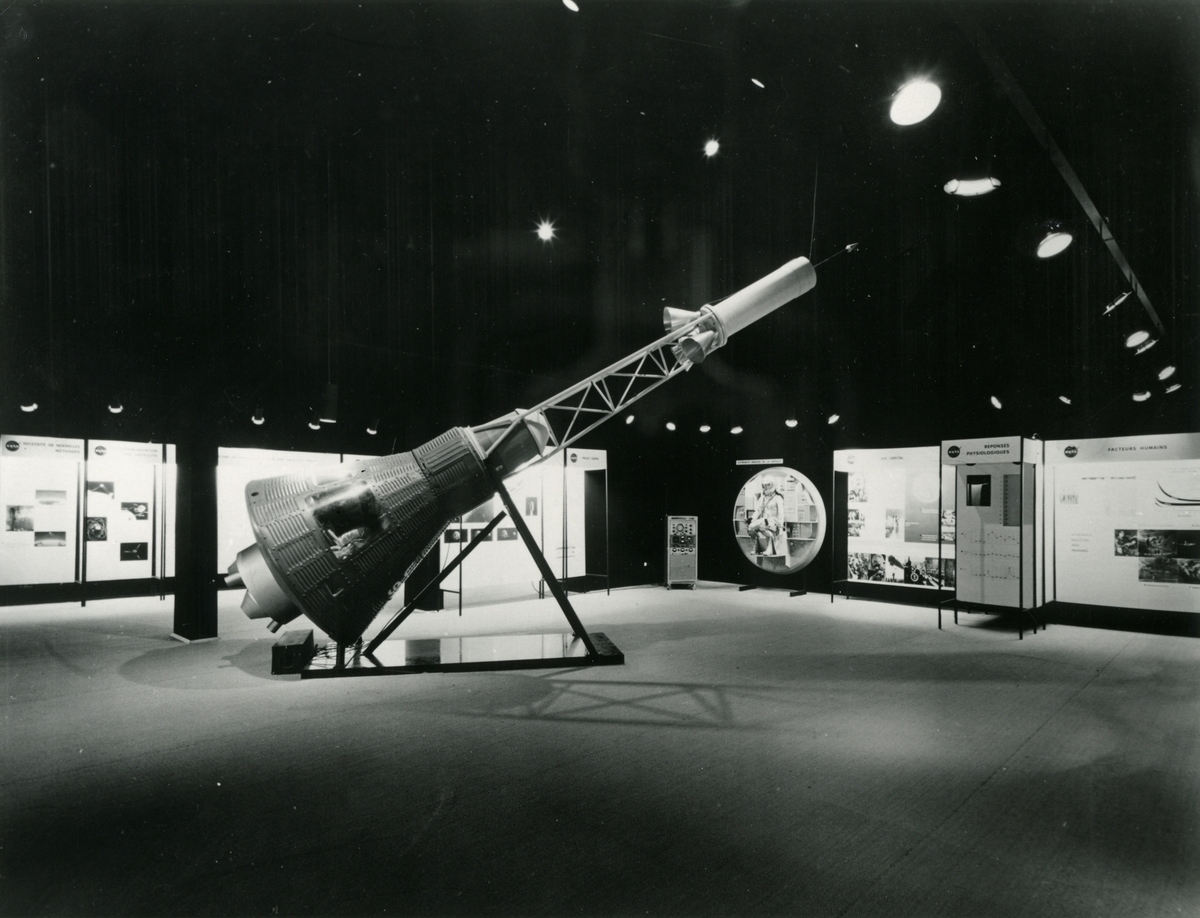 Rymdutställningen på Tekniska museet 1963. Modell av Mercury-kapseln.