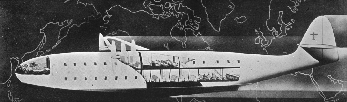 Skioptikonbild med motiv av genomskuret passagerarplan.