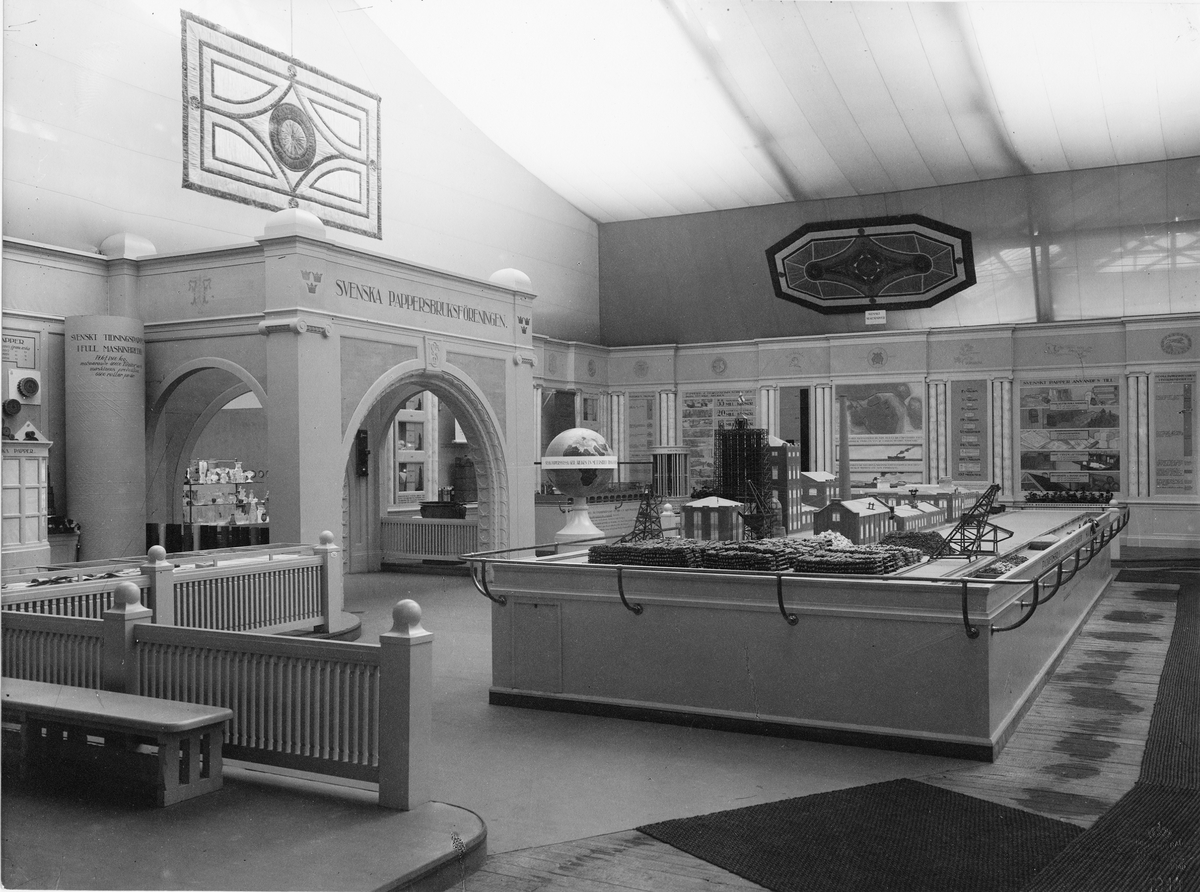 Svenska Pappersbruksföreningens paviljong vid Baltiska Utställningen i Malmö 1914. Modell till sulfatsellulosafabrik med pappersbruk.