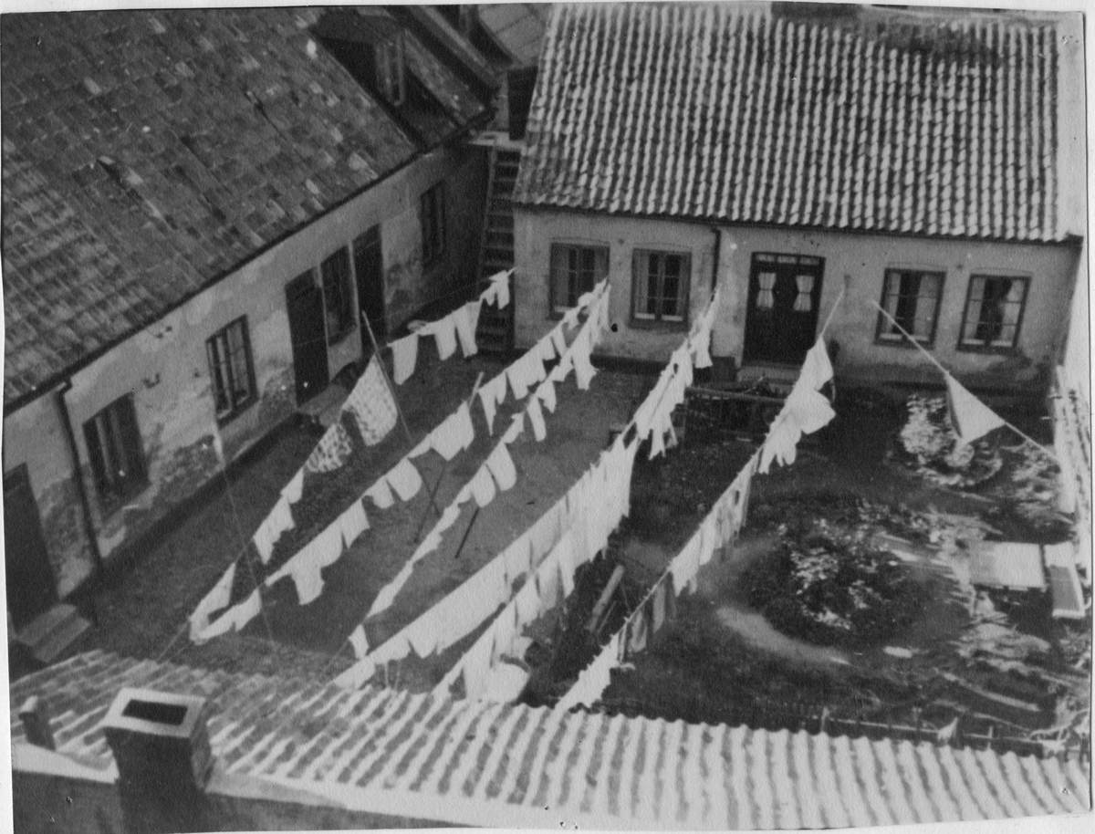 Gårdsbild över "Lundahusen" Stockholm, omkring 1935.