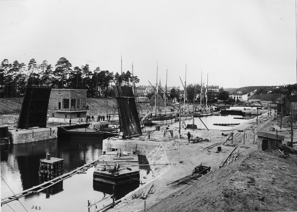 Södertälje Kanal. Ombyggnaden . Vy av slussen sedd från söder.