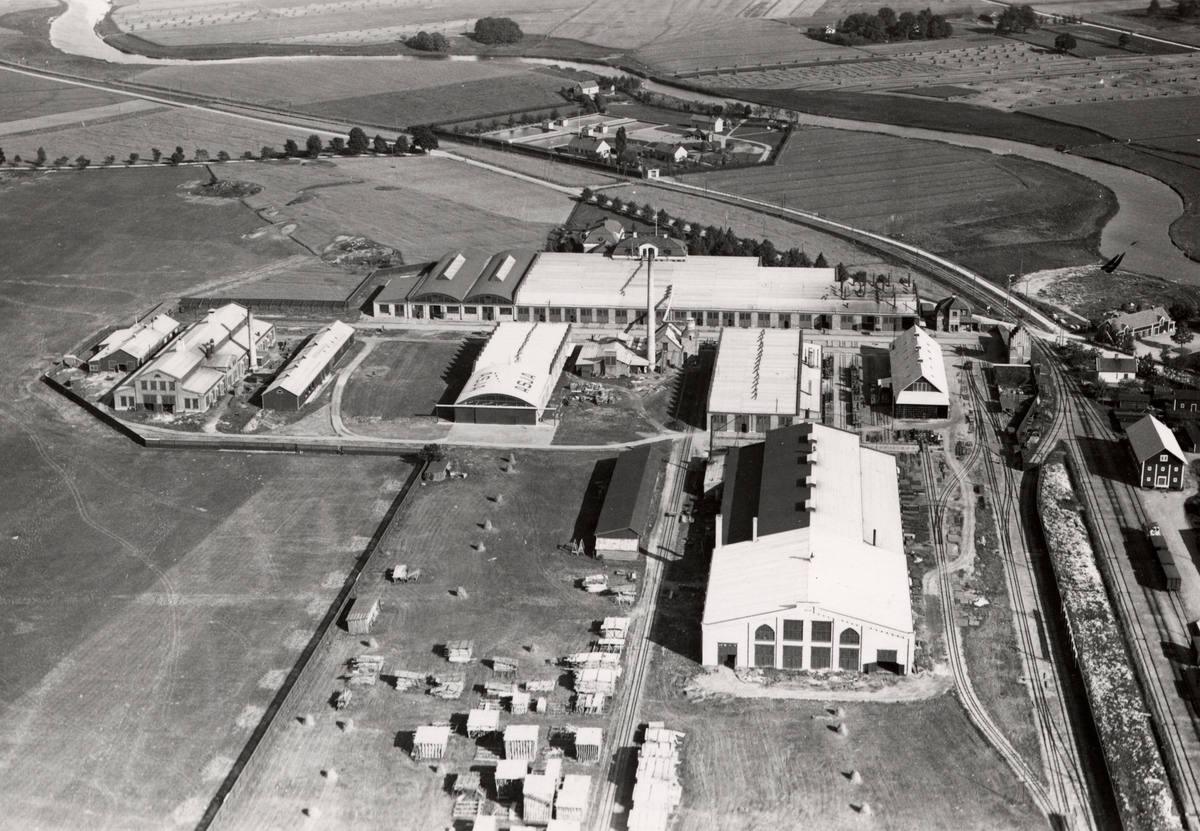 Flygfotografi över AB Svenska Järnvägsverkstäder i Tannefors.