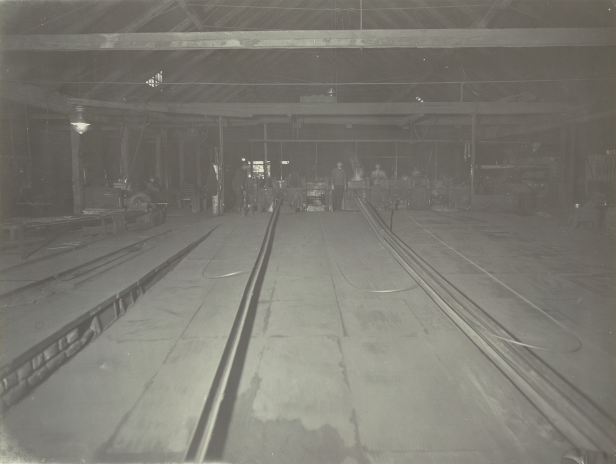 Boxholms Järnverk. Treåddragning i Fleminge gamla valsverk omkring 1915.