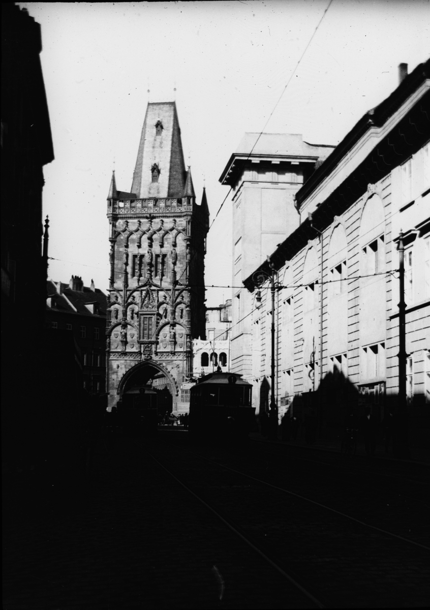 Skioptikonbild med motiv av Pulverturn, Prag.