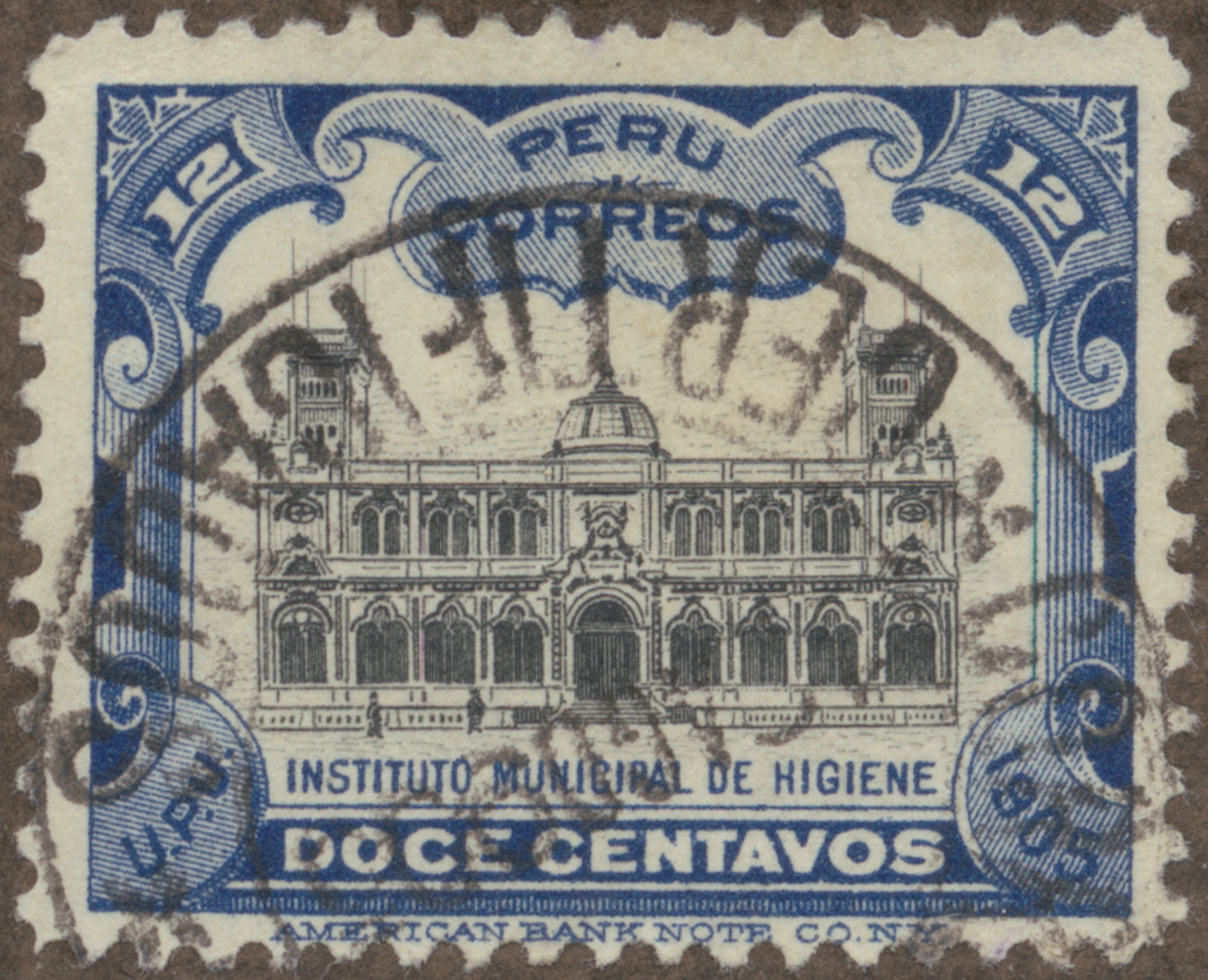 Frimärke från Peru, 1905. Motiv av Municipala Insitutetet för Hygien i Lima.