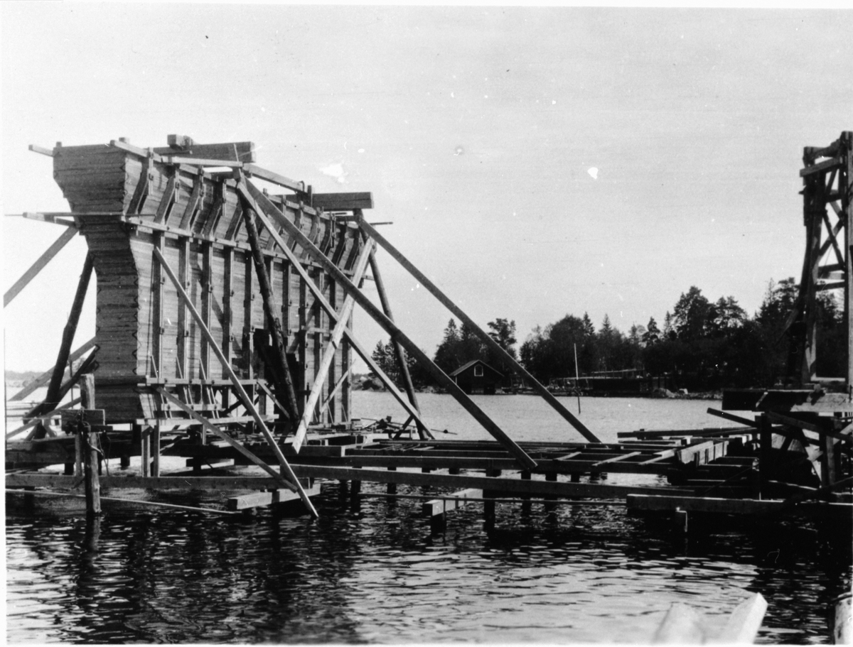 Byggherre: Byggnadsaktiebolaget Contractor, Stockholm. Den 200 m långa och 13,5 m breda pirbyggnaden i Vallvik för Marmaverken var imponerande också med avseende på det stora vattendjupet (10 m).